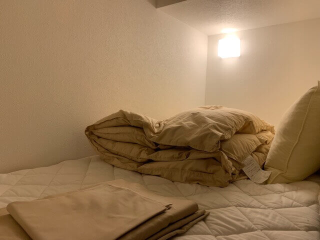 こんな感じの部屋になっています。2人ぎりぎり寝れるかなとういぐらいのスペースです。
